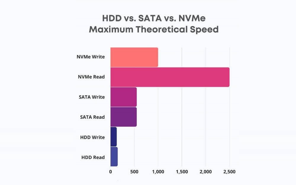 Sự khác biệt về hiệu suất giữa SSD SATA và NVMe là rất đáng kể: