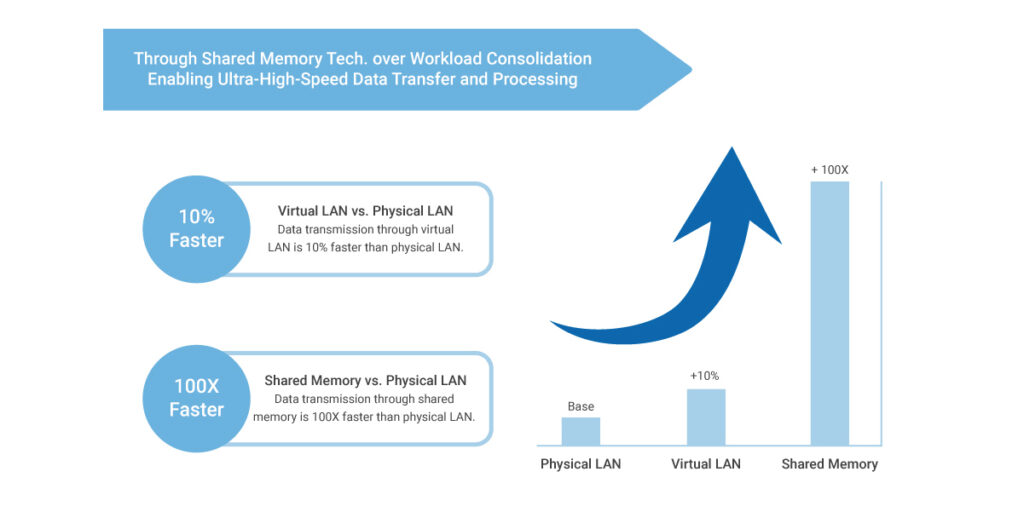 Cách tiếp cận này được thực hiện thông qua công nghệ ảo hóa và một cơ chế giao tiếp dữ liệu đột phá: